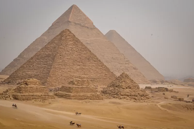 The Giza Plateau, just outside Cairo, is home to the most iconic pyramids in the world. These include the Great Pyramid of Khufu, the Pyramid of Khafra, and the Pyramid of Menkaure.